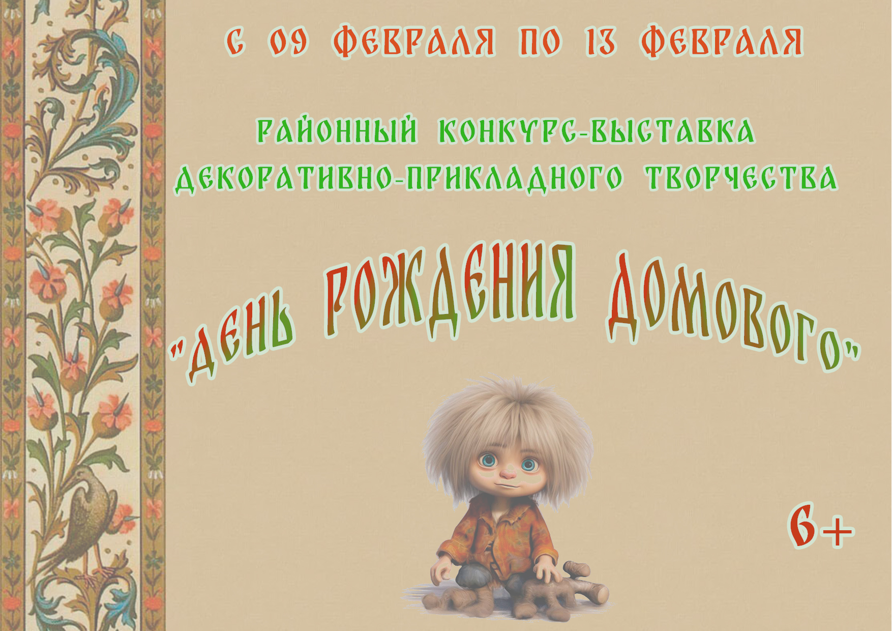 С радостью приглашаем вас принять участие в уникальном событии - Районном конкурсе-выставке декоративно-прикладного творчества «День рождения Домового»!