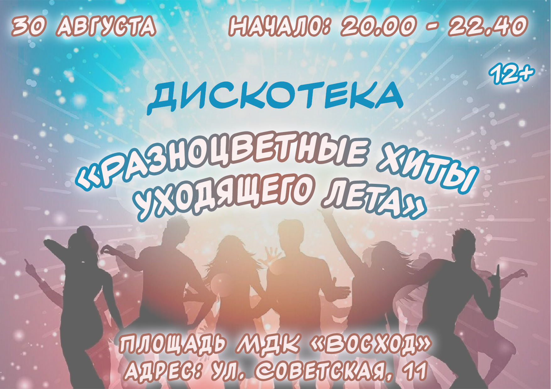 Дорогие друзья! Приглашаем вас на заключительную дискотеку лета 2025 года - "Разноцветные хиты уходящего лета"!